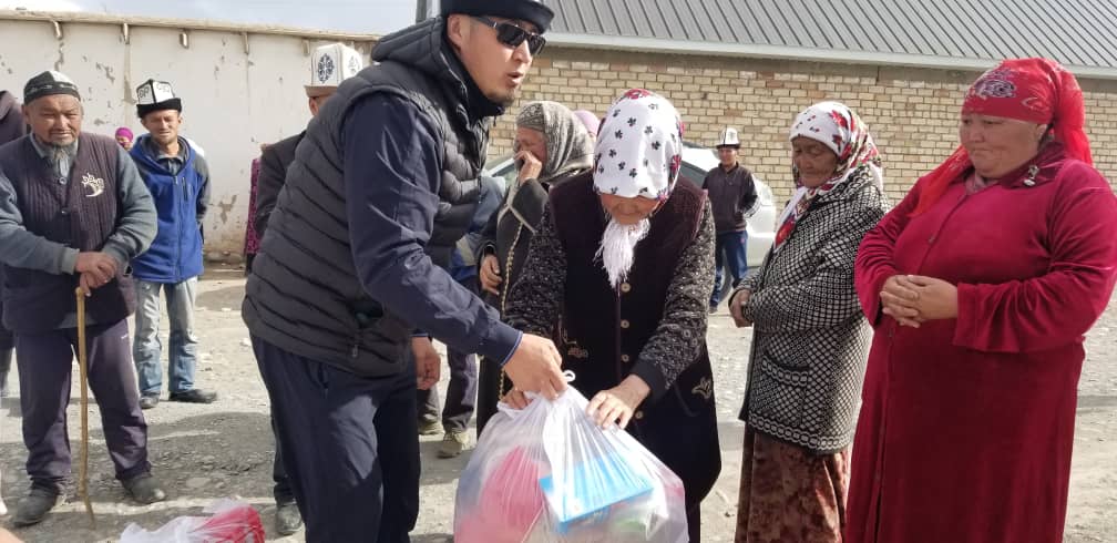 Анда Сары-Могол айылындагы памирлик 51 тургунга жана жергиликтүү 40 үй-бүлөгө жардам баштыкчаларын жеринде таратып берди.