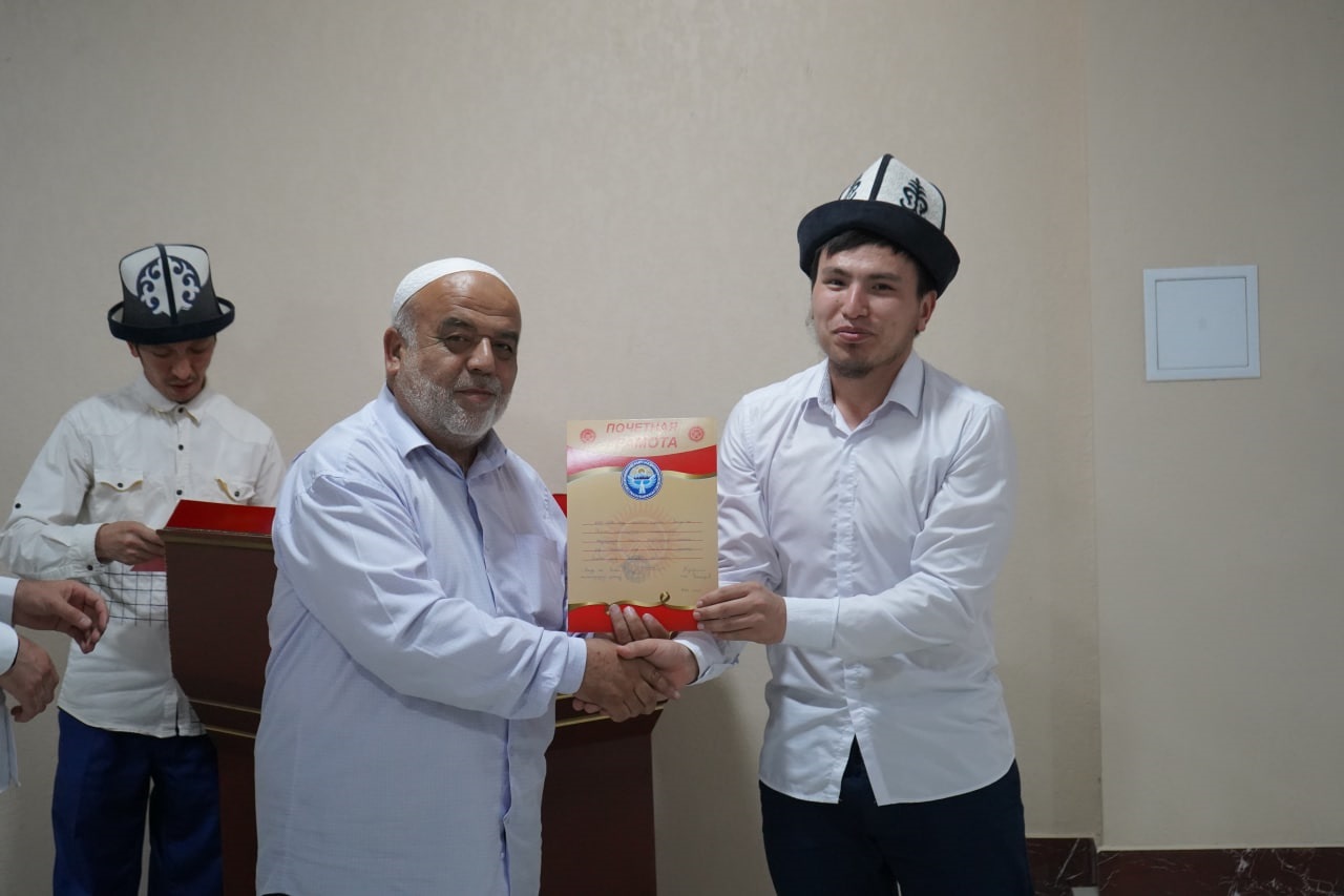 Жыйындын жүрүшүндө ректор Абдирашит ажы Батыров студенттерге кайрылып илим-билимдин пайдалары тууралуу нускалуу сөздөрдү айтып, эс алуу учурунда алган билимдерин унутпай кайталап, бир жыл бою алган тарбиясын иш жүзүндө ашыруу керектигин баса белгилеп, ата-энесине жакшы кызмат кылууларын буйруду.
