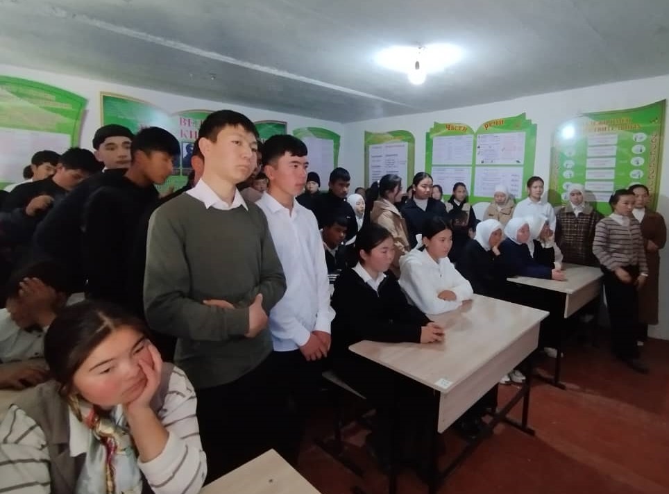 Бүгүн, 5-декабрда Баткен районунун Жаңы-Жер айылындагы Азирети Али мечитинин имам-хатиби Ибрахим Бекназаров укук коргоо кызматкерлери менен биргеликте мектеп окуучуларына дин маселелерин түшүндүрүп, экстремизм жана терроризм туурасында маалымат лекциясын окуп, ата-энени, Мекенди, элди-жерди сүйүүгө үндөдү.