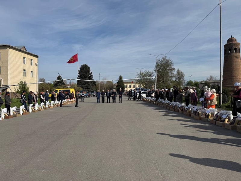 «Бул жылкы садака-фитрдин эсеби менен районубуздагы аз камсыз болгон үй-бүлөлөргө азык-түлүк камтылган баштыкчаларды тараттык. Жалпысынан 150 үй-бүлөгө жардам берилген болсо, алардын ичинен 100 үй-бүлөгө 2500 сомдук жардам баштыкчалары, ал эми 50 үй-бүлөгө 2500 сом акчалай жардам берилди. Абалына жараша айрымдарына 3000 сомдон берилгендер да болду. Албетте бул иш-чараны өткөрүүдө жалпы имамдарга ыраазычылык билдиребиз», – деди баш имам-хатиб Үсөн Маматтурсун уулу.