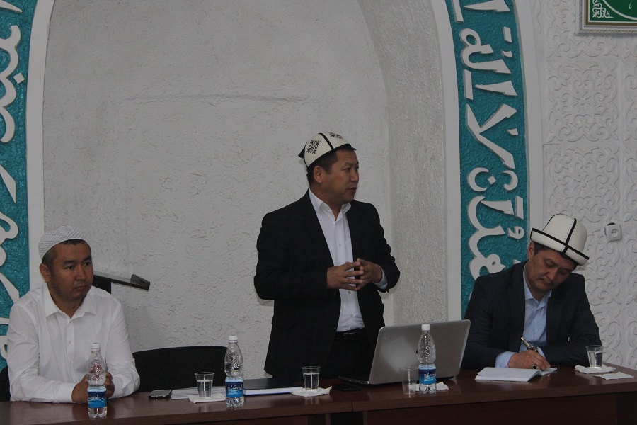 Кечээ, 19-июнунда Кыргызстан Мусулмандарынын Азирети Муфтийинин орун басары Жоробай ажы Шергазыев жана КМДБнын фатва бөлүмүнүн адиси Токтогазы уулу Бактияр Нарын шаарынын “Азирети-Али” борбордук мечитинде Нарын облусунун имамдарына нике каттоо журналын тааныштырышты.
